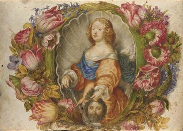 | Portrait of the Grand Duchess Vittoria della Rovere as Judith, in a shell surrounded by a garland of tulips, carnations, and oth | |