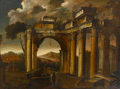 Figures beneath a ruined arch