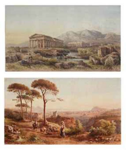 | A view of Naples with the Vesuvius in the background; and The Temple of Neptune and the Temple of Hera, Paestum | |
