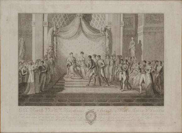 | L'EMPEREUR NAPOLÉON 1ER ET DE L'IMPÉRATRICE MARIE LOUISE RECEVANT LES FÉLICITATIONS DES DÉPUTÉS FRANÇAIS ET ITALIENS | |
