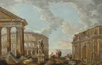 | An architectural capriccio with the Arch of the Argentarii, the Colosseum, the Farnese Hercules and the Arch of Constantine | |