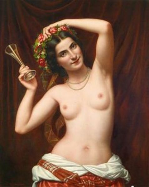 | Naked Beauty with Wreath of Flowers and Champagne Glass | |