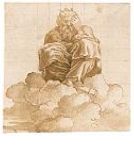 | A MALE FIGURE SEATED ON CLOUDS: PART OF A DESIGN FOR A CEILING DECORATION | |