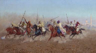 | Charging Horsemen outside the Northern Cemetery with the Mausoleum of Sultan Qaytbay and the Mosque of Muhammad Ali in the backg | |