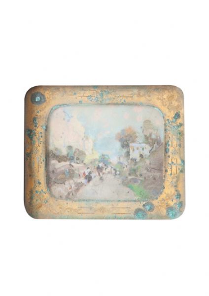 COUNTRY ROAD WITH TRAVELLER AND FARMHOUSE