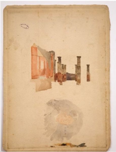 | Etudes : ruines à Pompéi au recto et tête de femme au verso | |