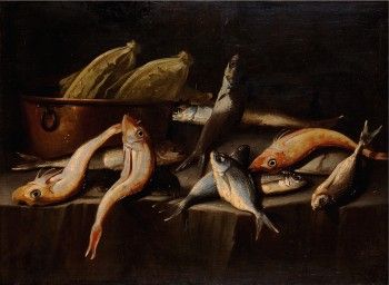 | Natura morta con pesci - stilleben med fiskar och köksutensilie | |