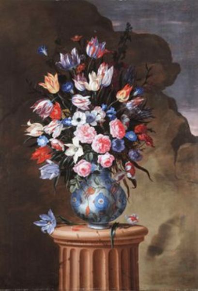 Tulips, Roses, Peonies, Anenomies and other Flowers in a Vase