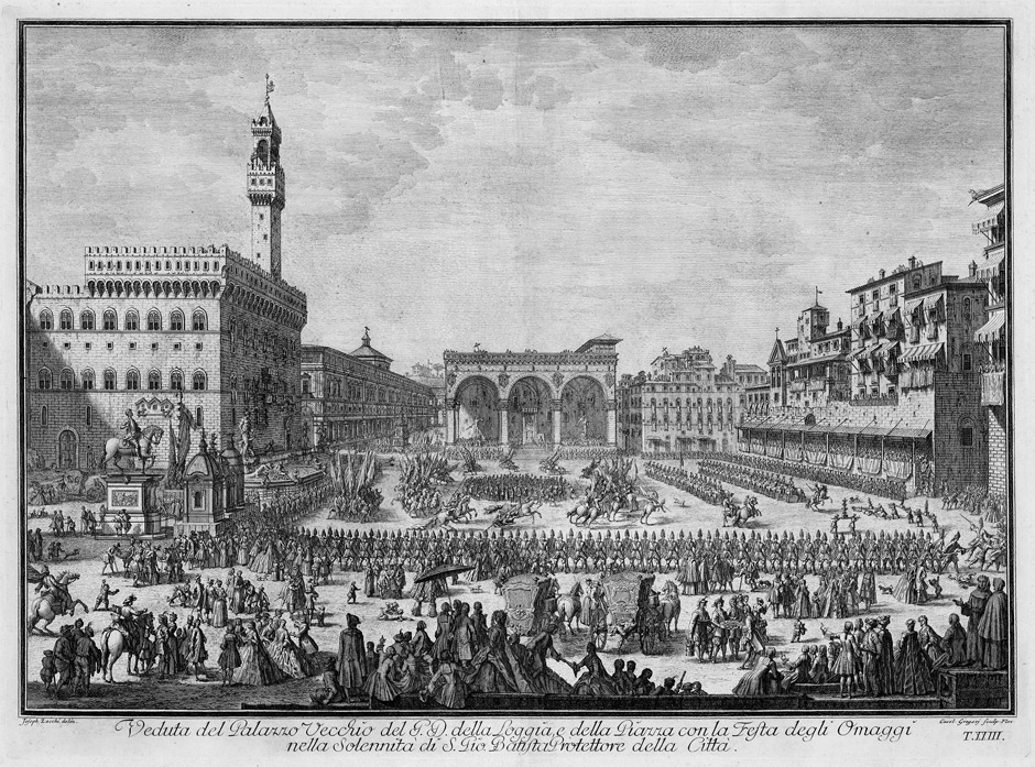 | Veduta del Palazzo Vecchio e della Piazza con la Festa degli Omaggi nella Solennità di S. Gio | |