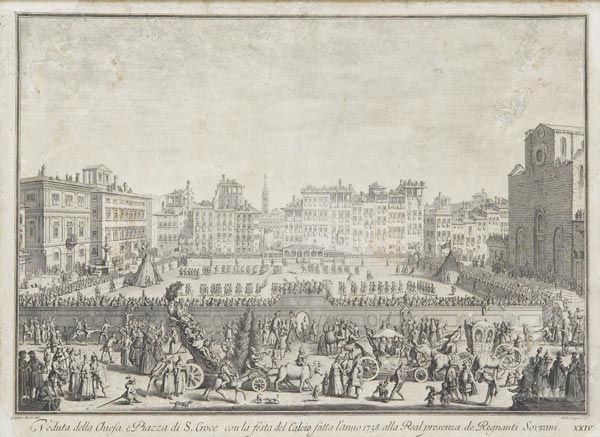 | VEDUTA DELLA CHIESA E PIAZZA DI SANTA CROCE CON PARTITA DI CALCIO | |