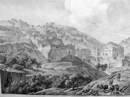 | Vue de Jeremie, Chef-lieu de la tribu arabe d'Abou-gosh (after Baltard) | |