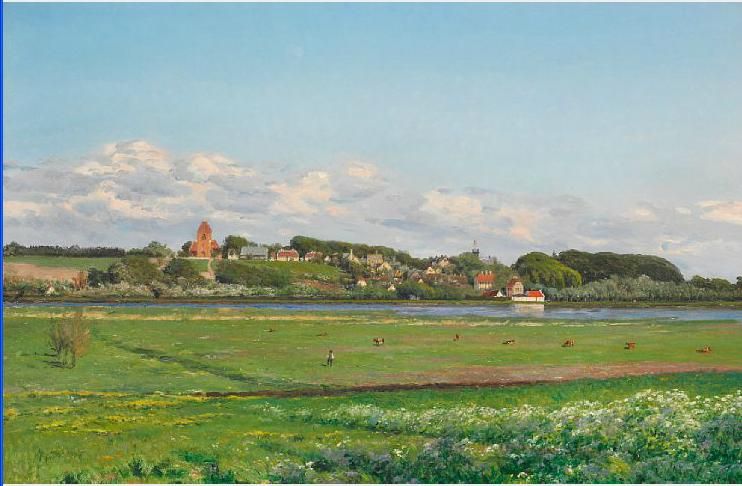| Landscape at Gentofte Sø with the village and church of Gentofte in the background. | |