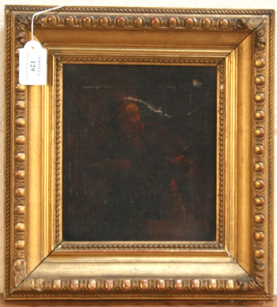 Half Length Portrait of a Musician beside an Oil Lamp on a Table