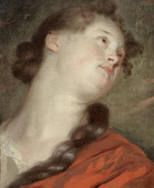 Study of a young woman, bust-length, with a red shawl