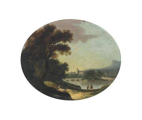 A river landscape with figures; and A river landscape with a bridge in the distance