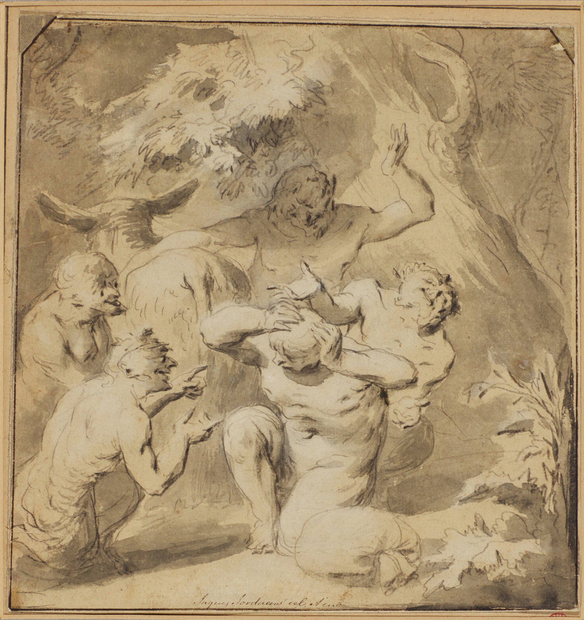 | Chalk Black chalk and grey wash within pen and black ink framing lines | |