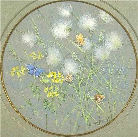 A KARNER BLUE BUTTERFLY WITH OTHERS AND DANDELIONS