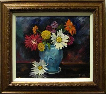 FLOWERS IN A BLUE VASE (LANDSCAPE)