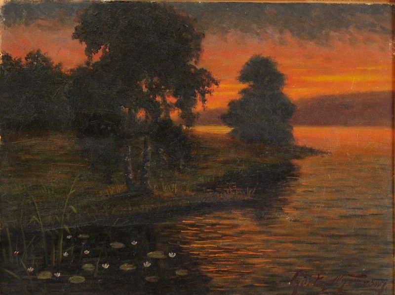 Sjölandskap i skymning