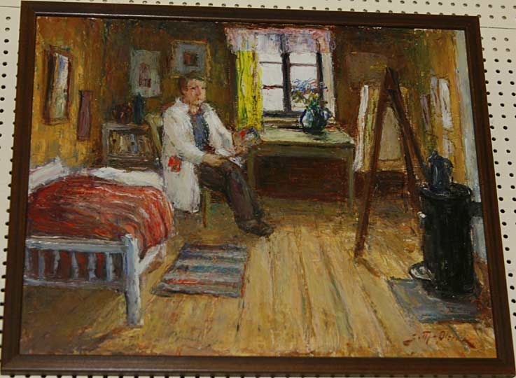 konsnären själv i sin ateljé