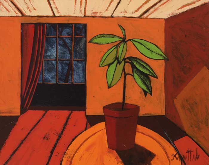 STILL LIFE, INTERIOR WITH POTTED PLANT