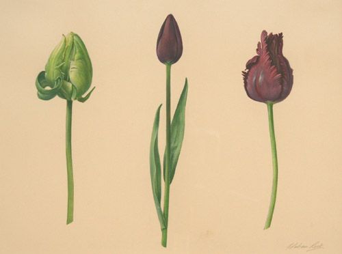 Botanical Study of Three Parrot Tulips in Stages of Bloom