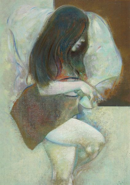 Oil and coloured chalks on canvas board