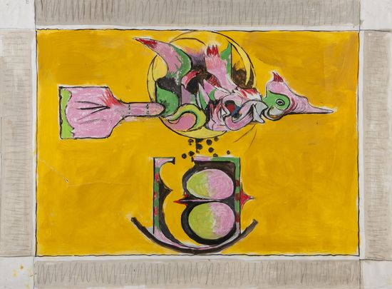| Gouache watercolour, coloured chalks and graphite on paper | |