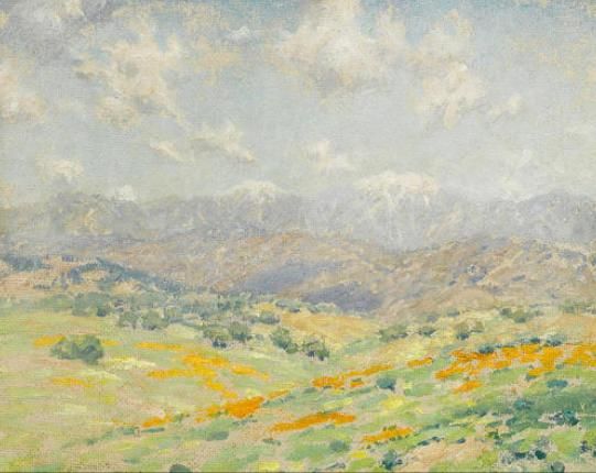 Fields of wildflowers with the San Gabriel Mountains beyond
