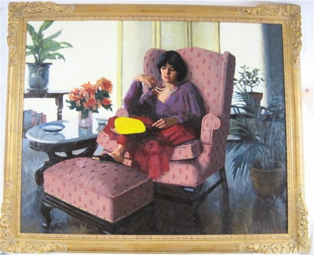 An Interior scene with woman in lolling chair