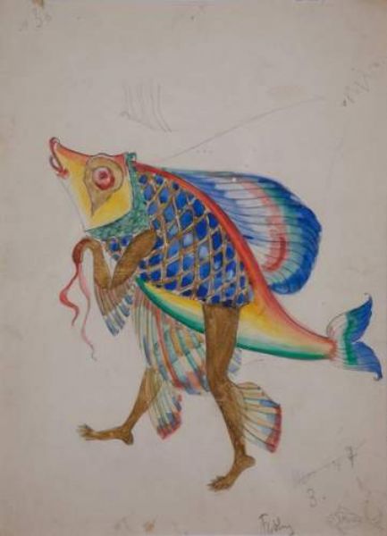 | Projet de costume d'un poisson rouge pour le spectacle de Zolotaia rybka d'après le conte de fée de A.S. Pushkin ; Présenté à l' | |