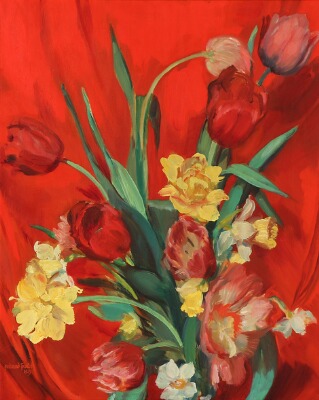Still life with tulips and daffodills