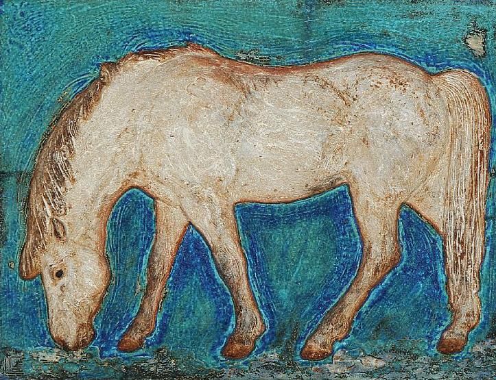 Relief with horse. Signed monogram