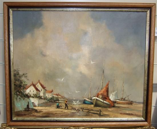 Fishing boats at low tide