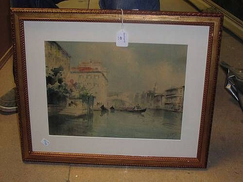 The Grand Canal with gondola and the Rialto bridge in the distance, Venice