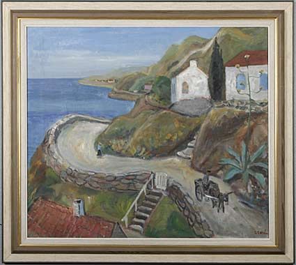 ydländskt kustlandskap med figurer och hus