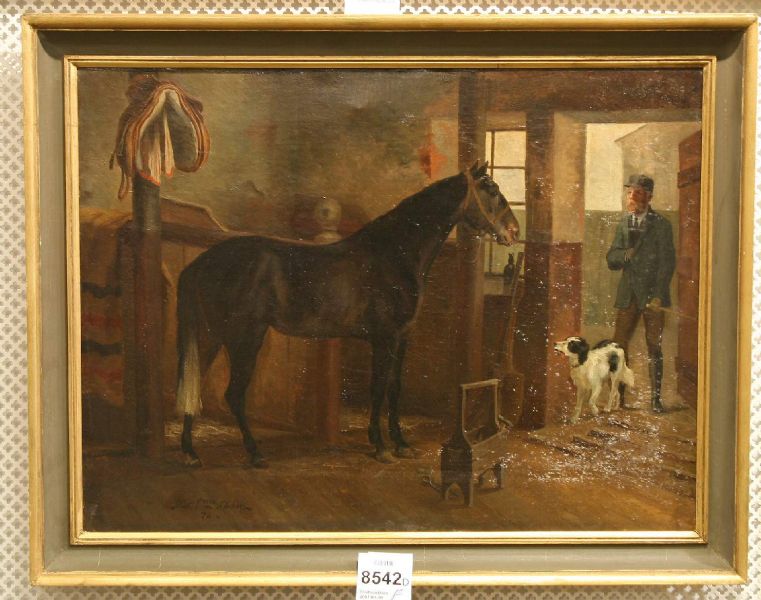 Stallinteriör med häst och vallhund