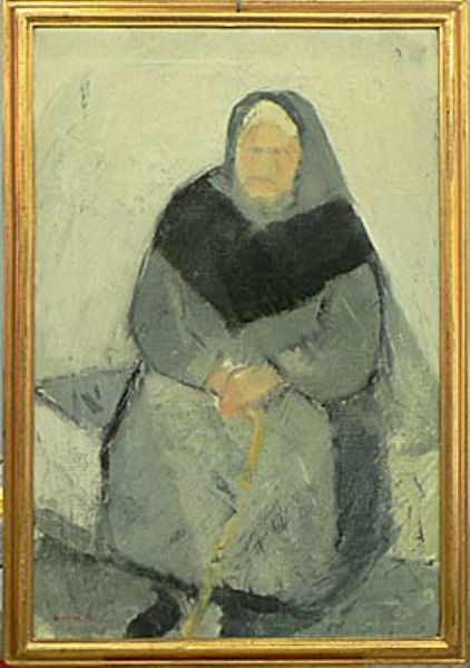 sittande gumma, a tergo betecknad Viken 1956
