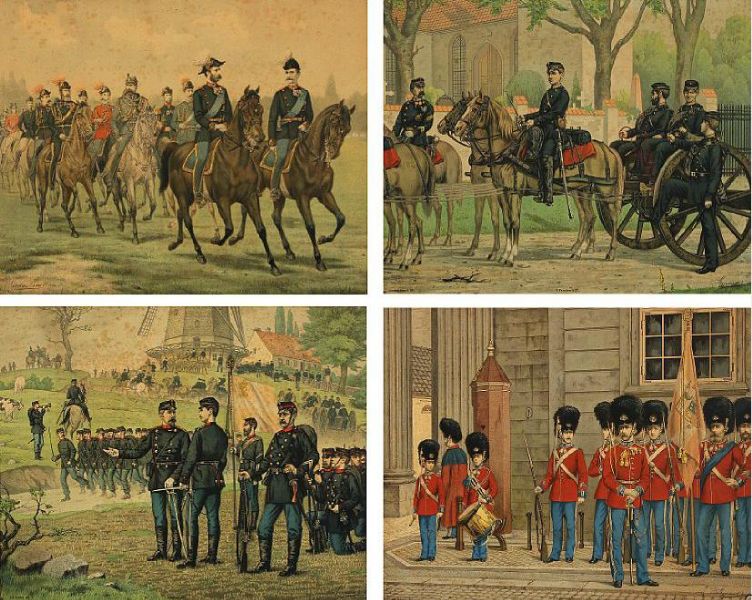 | Danish guardsmen in front of Amalienborg, Danish soldiers at Dybbøl Mølle etc | |