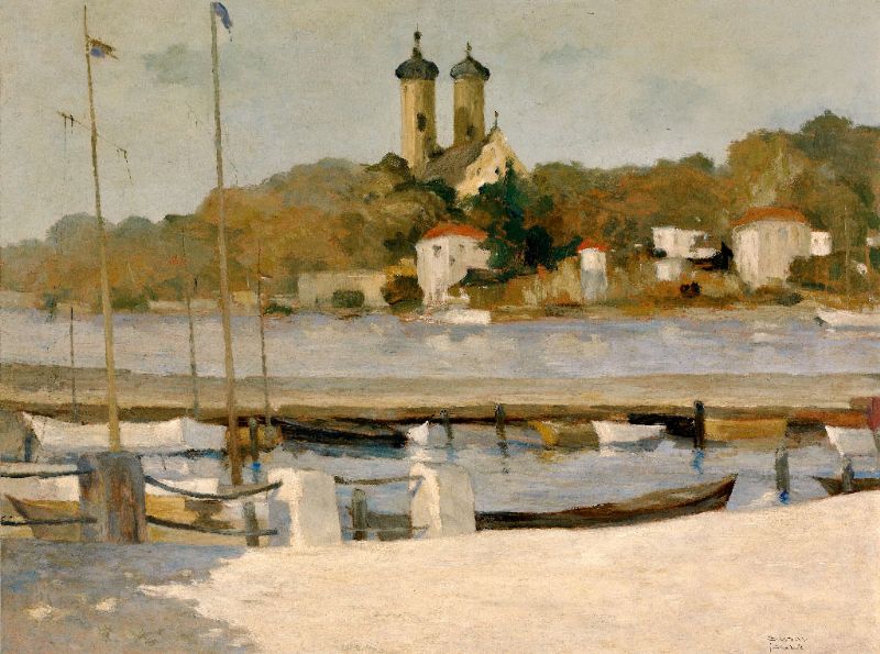 Blick auf die Hofkirche in Friedrichshafen an einem Sommertag.