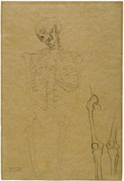 Two studies for the skeleton in the painting Medizin (1901-1907)