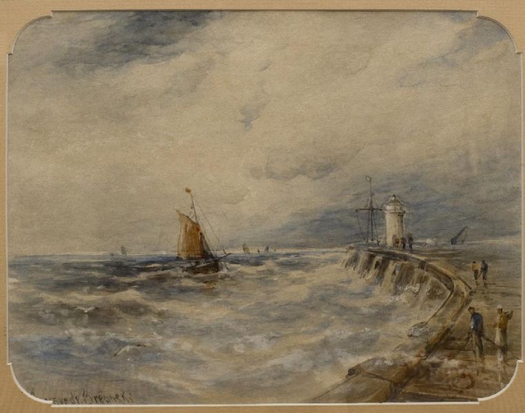SHIPPING BY A JETTY WITH A LIGHTHOUSE