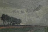 Lowland, church in the background, thundery sky