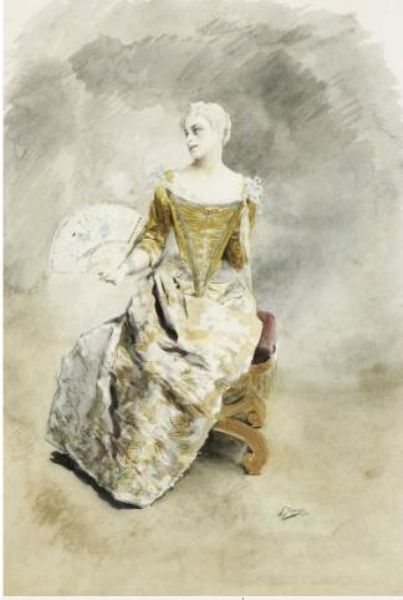 Femme à l'éventail dans le gout du XVIIIe siècle