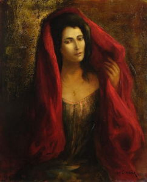 Frau mit rotem Kopftuch