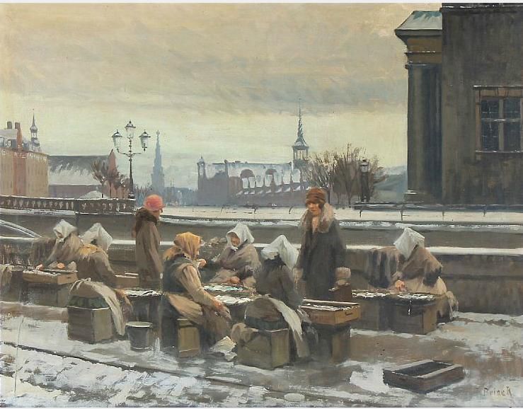 | Fishermens' wife selling fish at Gl. Strand in Copenhagen, at winter time | |