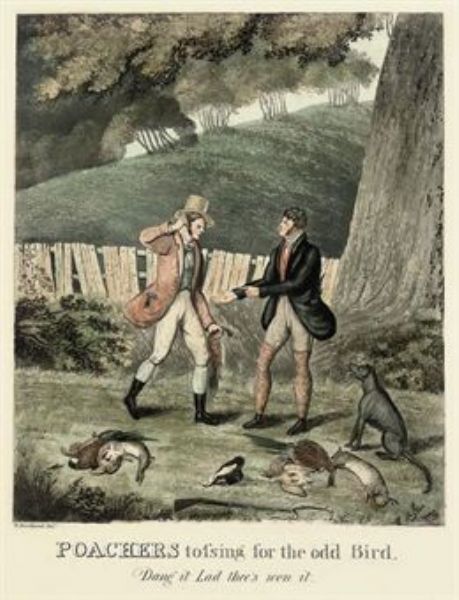| Poachers tossing for the odd Bird, dang it Lad thee's won it; and I told you I should fine a Hare in that Fallow | |