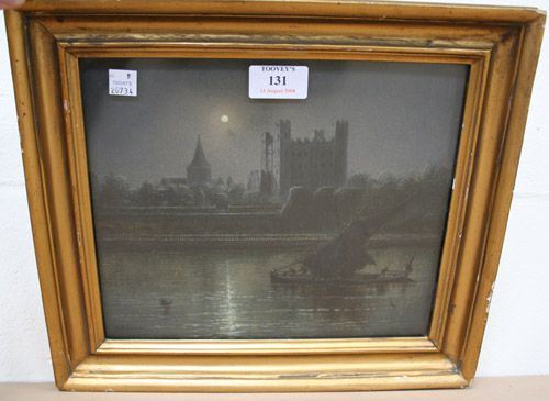 Moonlit View of a Barge on the River Medway, Rochester