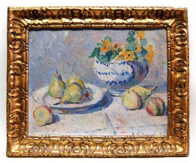 Stillleben mit Vase und Birnen