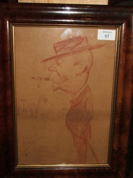 Caricature of a politician smoking a pipe and inscribed 'Italy'